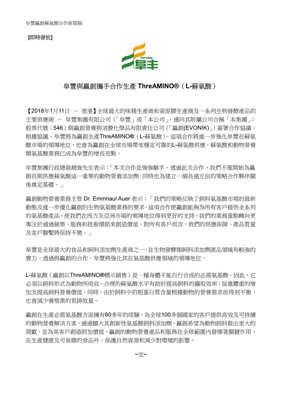 MK体育平台-MK体育平台(中国)与赢创携手合作生产ThreAMINO®(L-苏氨酸)