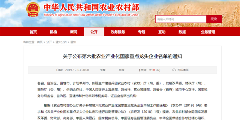 12月3日,农业农村部、国家发展改革委、财政部、商务部、中国人民银行、国家税务总局、中国证券监督管理委员会、中华全国供销合作总社联合印发通知,公布第六批 299 家农业产业化国家重点龙头企业名单,龙江MK体育平台-MK体育平台(中国)公司榜上有名。